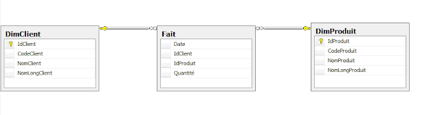 J'ai imaginé une table de faits avec un idTemps, un IdClient, un IdProduit et une quantité.